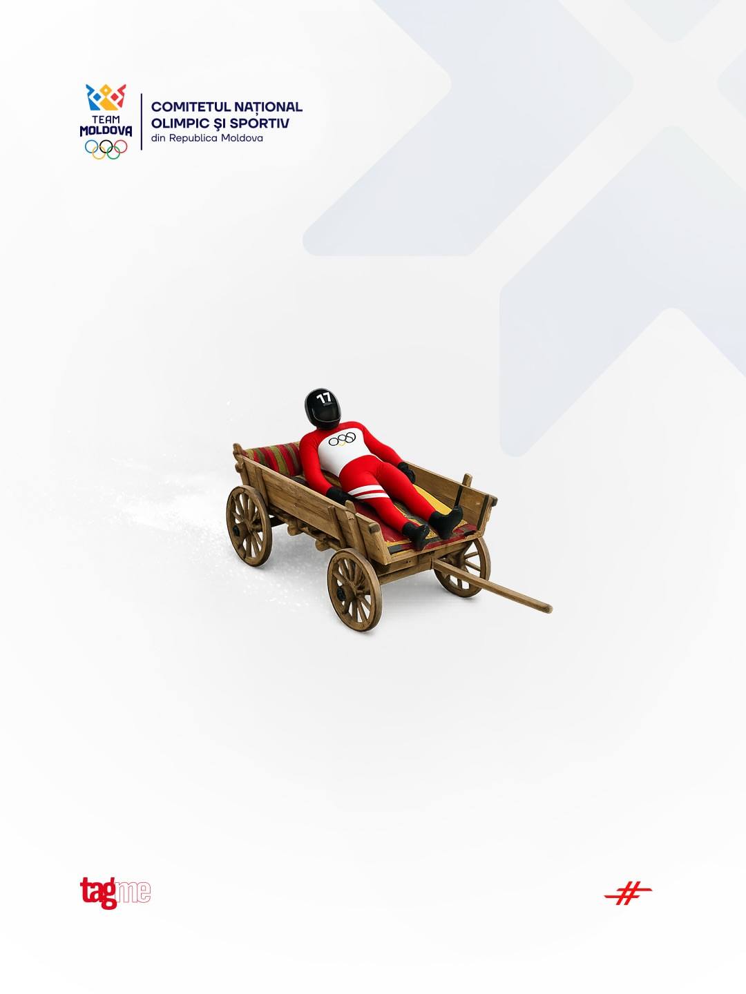 Fiecare carte poștală surprinde un sportiv în acțiune, plasat creativ pe obiecte și simboluri tradiționale ale Moldovei: de la mămăligă și sarmale, la cușma lui Guguță sau babă neagră, reinterpretate vizual ca pârtii, sănii sau podiumuri olimpice.