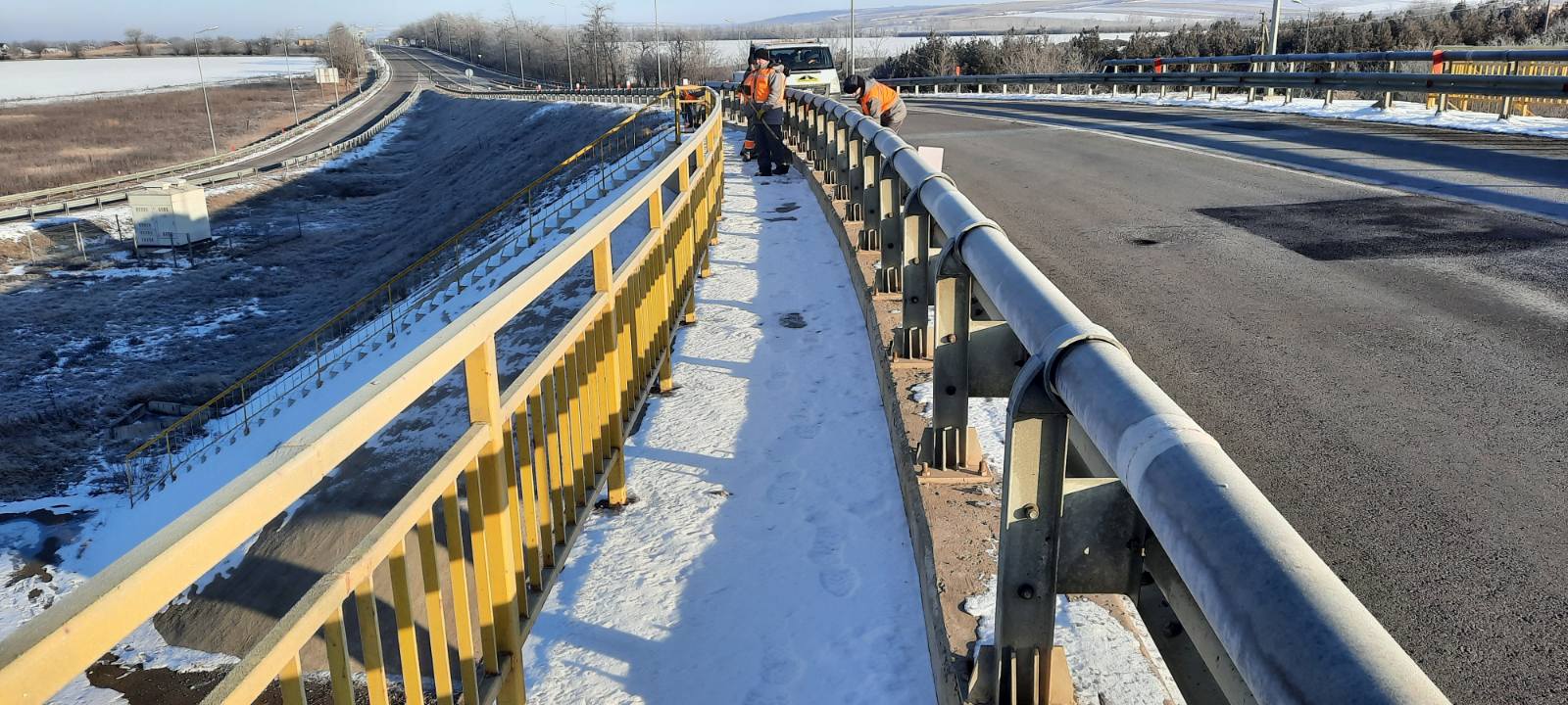 Potrivit instituției, în raionul Telenești, la nodul rutier de pe R14, pe drumul regional G46 și pe R5 Dubăsari, echipele au efectuat lucrări de salubrizare și curățarea trotuarelor podurilor de zăpadă