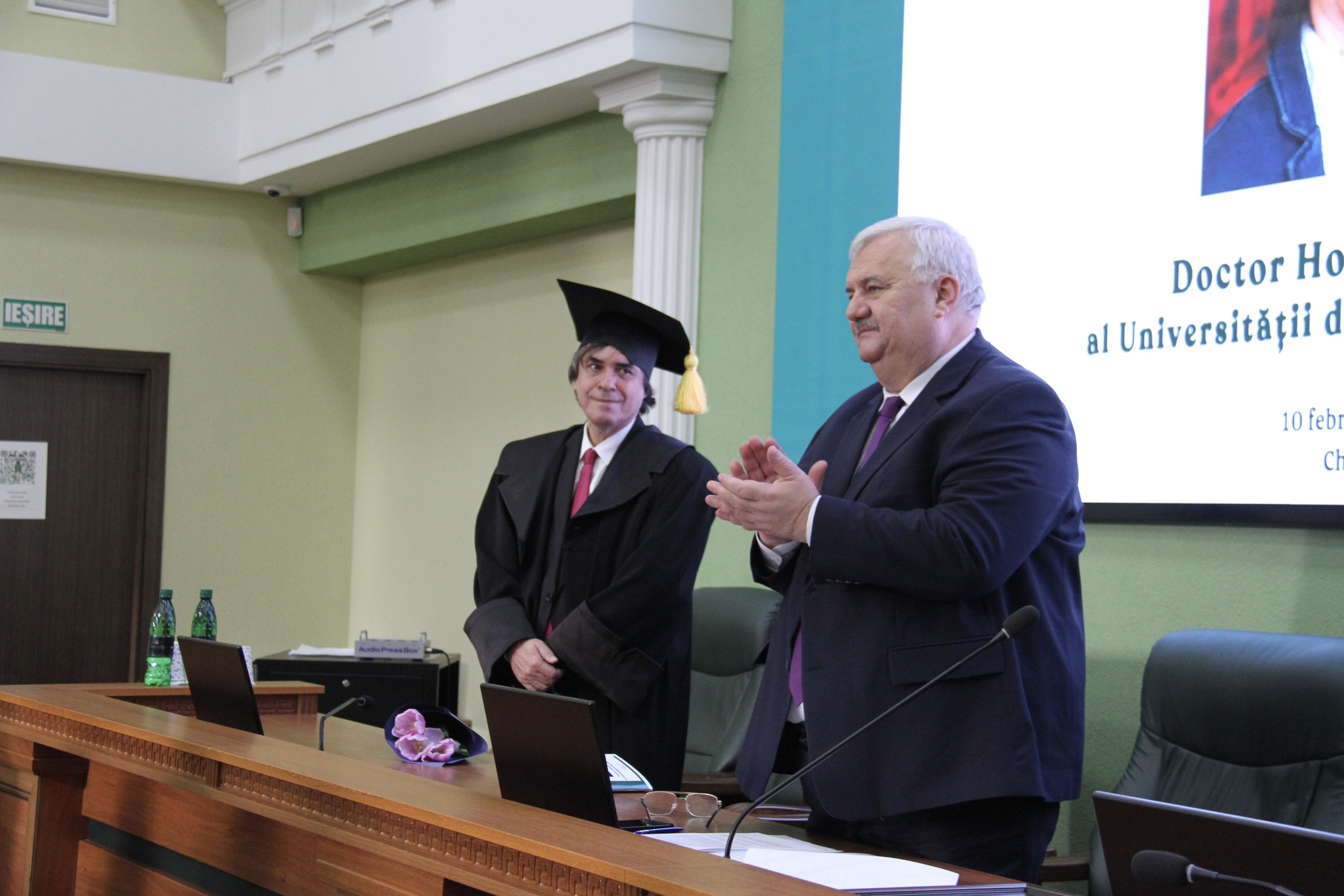 Rectorul Universitatea de Stat din Moldova, Igor Șarov, a menționat în cadrul evenimentului că este o onoare deosebită pentru instituție să-l aibă în comunitatea sa academică pe scriitorul și profesorul universitar Mircea Cărtărescu, personalitate marcantă a literaturii contemporane, a cărui operă și activitate intelectuală reprezintă un reper de excelență, inspirație și dialog cultural autentic pentru mediul universitar.
