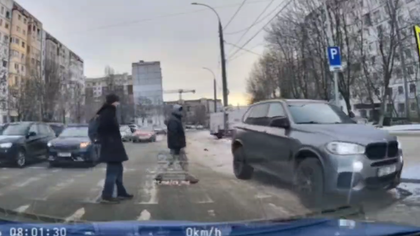 Un moment șocant a fost surprins pe o stradă din capitală, unde un șofer de BMW a ieșit la depășire pe contrasens, traversând direct o trecere de pietoni, pe care traversau oameni.