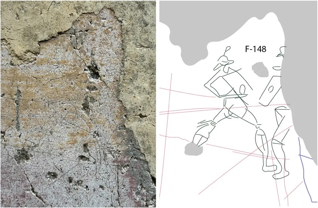 Alte inscripții includ mesaje ale unor persoane înrobite și ale spectatorilor de teatru. Un desen înfățișează doi gladiatori în luptă. Altul ar putea reprezenta o gladiatoare, o referință istorică rară.