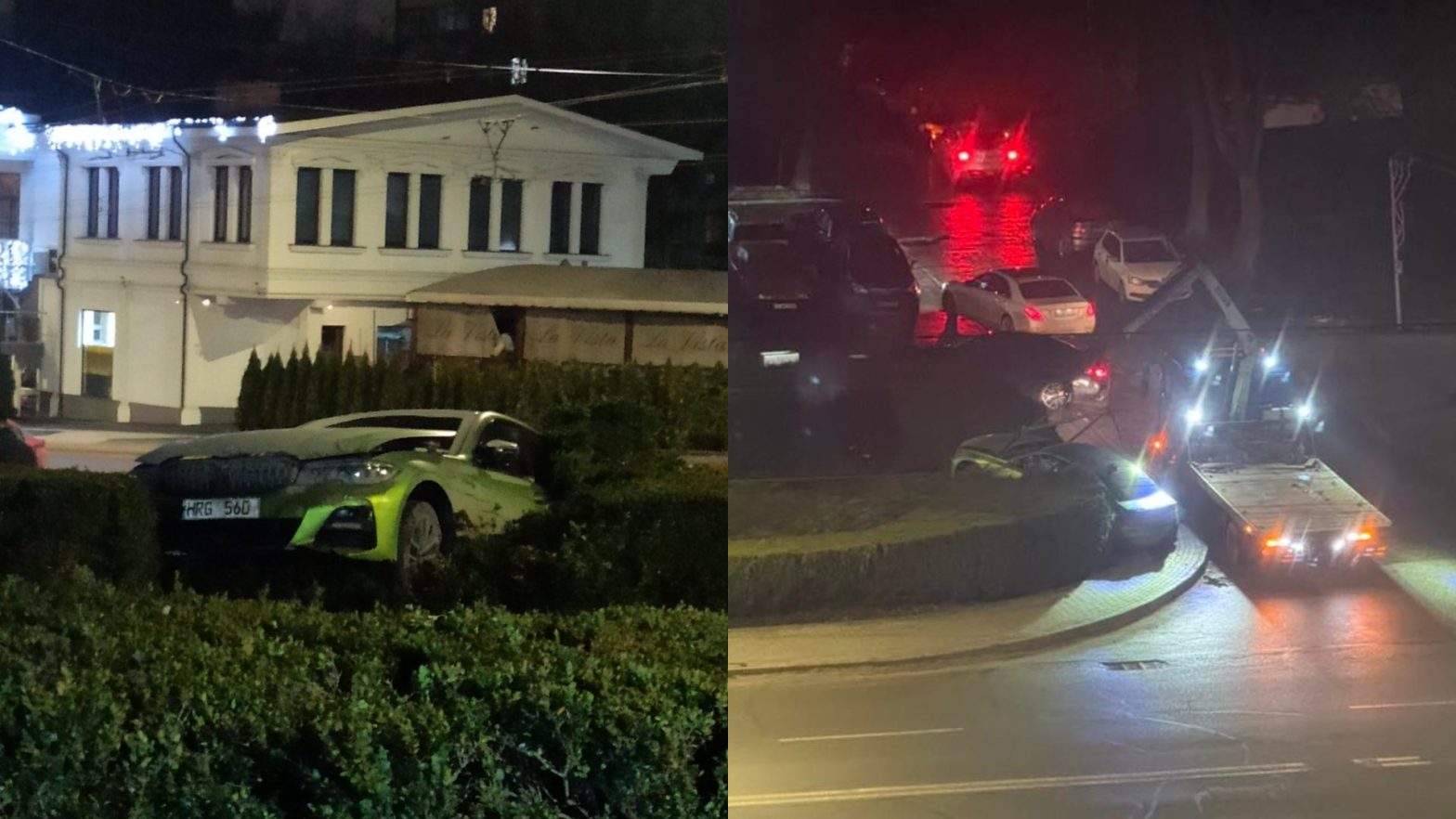 Totuși, în urma unor circumstanțe care urmează a fi stabilite, probabil în urma unei/unor încălcări a regulilor de circulație, în consecință BMW-ul a părăsit carosabilul și s-a oprit pe o zonă verde. Și mare a fost uimirea multor oameni să vadă că mașina este deja una bine cunoscută.