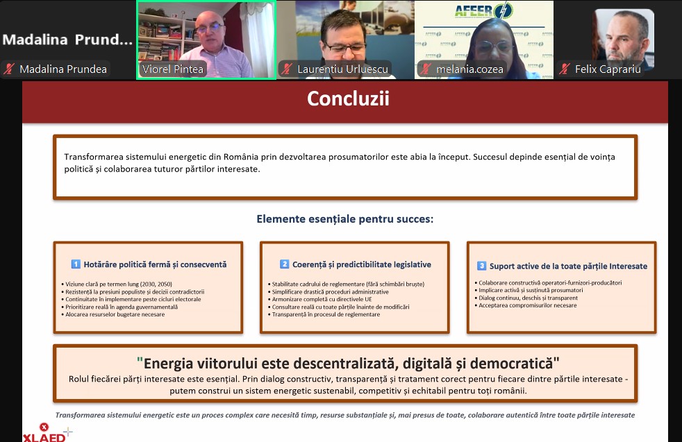 „Integrarea rapidă a unui număr tot mai mare de prosumatori schimbă fundamental modul de operare al sistemului energetic național. Pentru ca această transformare să rămână sustenabilă pe termen lung, este necesară o reglementare unitară, care să coreleze obiectivele de decarbonare cu stabilitatea sistemului energetic și a pieței de energie electrica”, a conchis Laurențiu Urluescu.