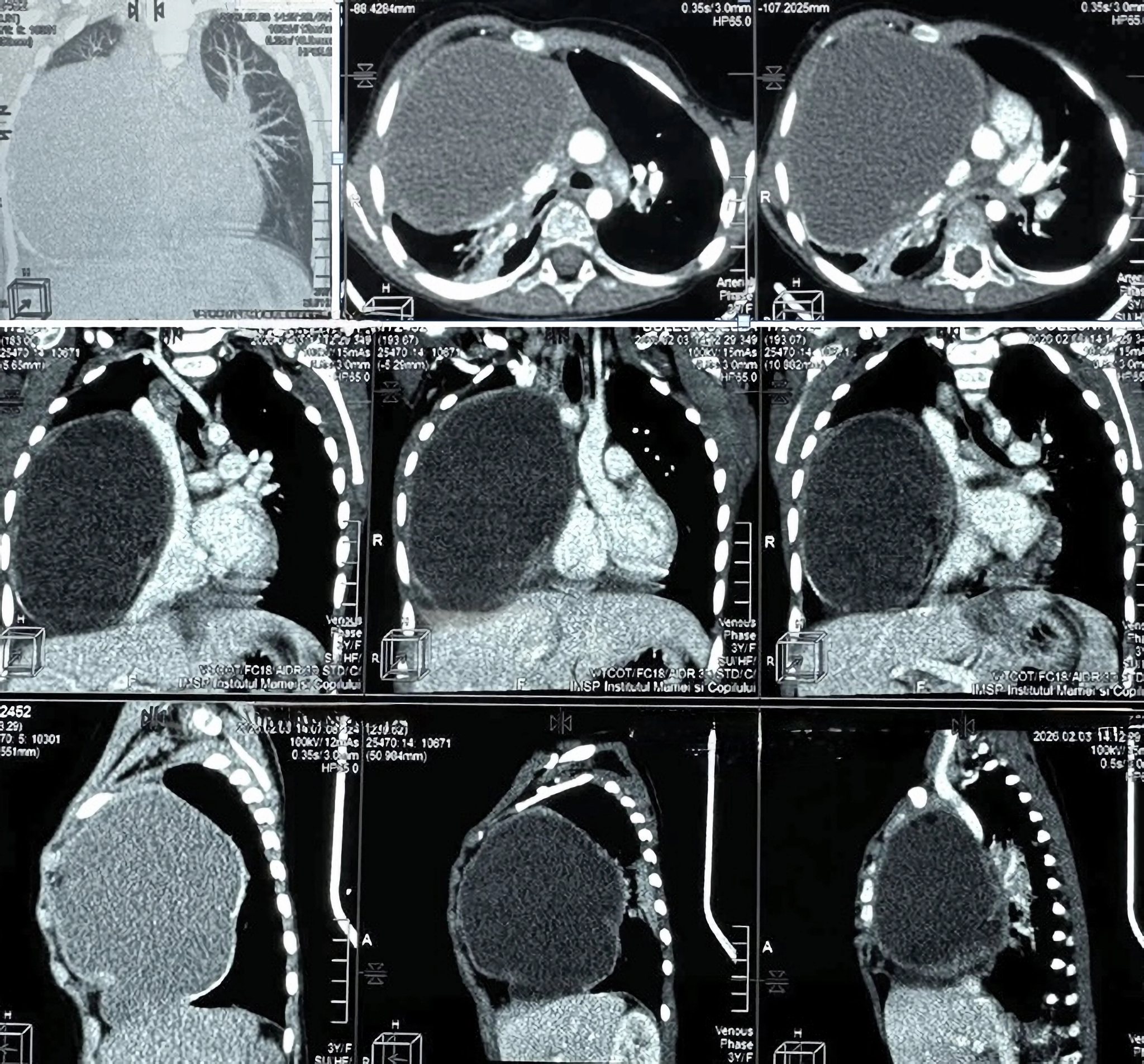 „Formațiunea ocupa circa 80% din cavitatea pleurală, comprimând aproape total plămânul drept și exercitând o presiune severă asupra structurilor mediastinale. Tomografia a sugerat un caracter multicomponențial (posibil teratom), asociat și cu o anomalie vasculară rară (arteră subclavie dreaptă aberantă)”, transmite instituția.