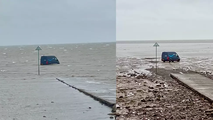 (foto/video) Un șofer a ajuns cu duba de livrări în mijlocul mării, după ce a urmat indicațiile GPS-ului, în Marea Britanie