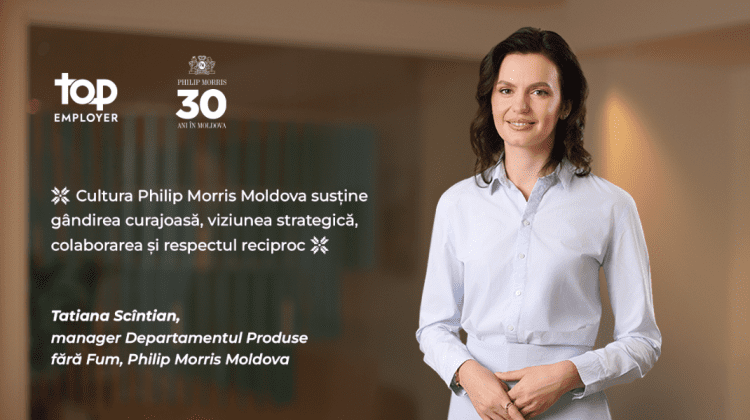 Philip Morris Moldova a obținut certificarea Angajator de Top (Top Employer) pentru a cincea oară, o recunoaștere a angajamentului companiei față de dezvoltarea profesională a angajaților, crearea unui mediu de lucru incluziv și promovarea celor mai bune practici din domeniul resurselor umane.