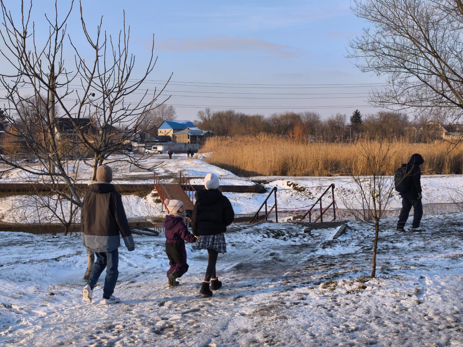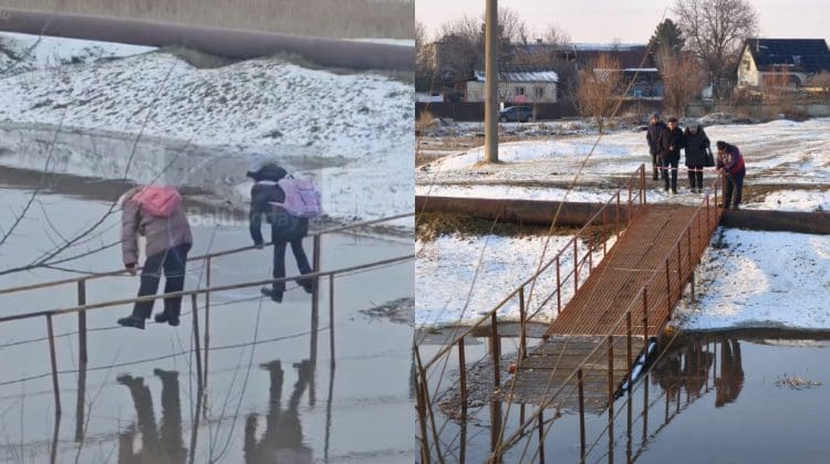 Mai mulți elevi au fost surprinși în timp ce traversau pe marginea unui pod pietonal inundat peste râul Răut, din Bălți. Podul a fost inundat, după ce în ultimele zile zăpada s-a topit și a crescut nivelul apei.