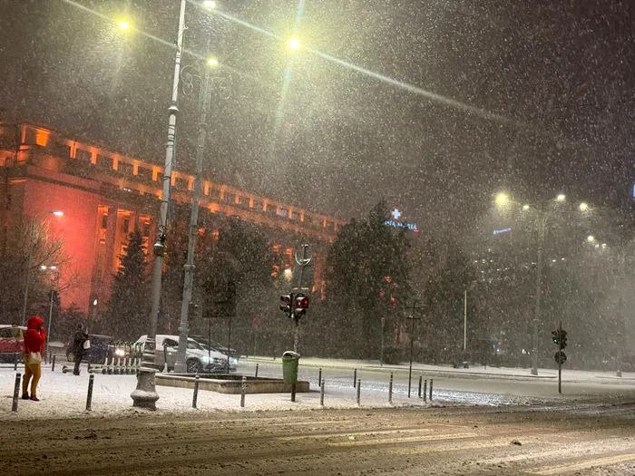 În centrul orașului, pe Calea Victoriei, stratul de zăpadă a ajuns deja la câțiva centimetri, în timp ce în zona Piața Universității ninge viscolit, autoritățile estimând că până dimineață se va forma un strat consistent, meteorologii prognozând că ar putea ajunge până la 50 de centimetri.