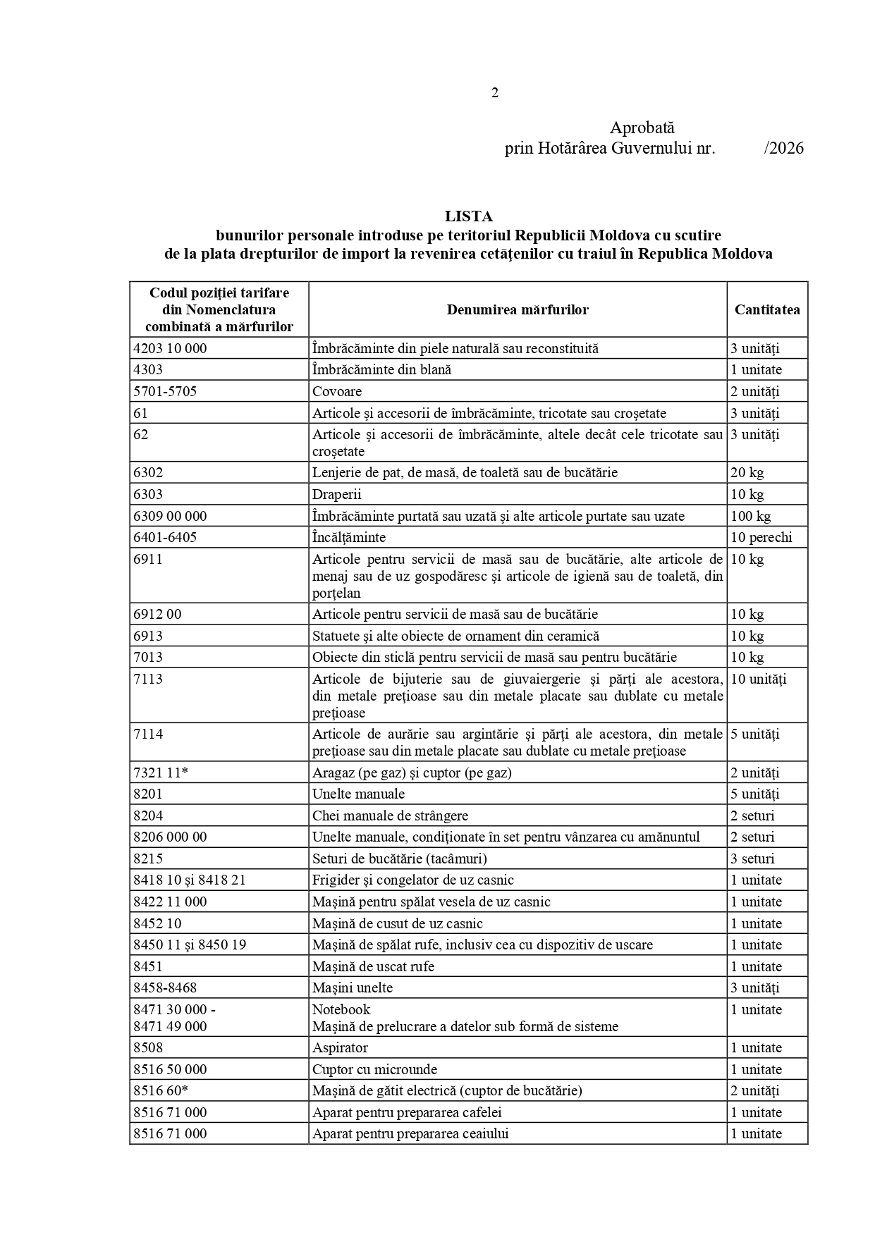Cetățenii Republicii Moldova care revin cu traiul permanent în țară vor continua să beneficieze de scutire la plata drepturilor de import pentru bunurile personale și un autovehicul, după ce Guvernul a aprobat lista bunurilor personale care pot fi aduse la revenire.