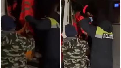 (video) Nu i-a oprit nici viscolul: Un bărbat cu o plagă, dus de polițiști într-o plapumă către ambulanța care s-a blocat, la Strășeni