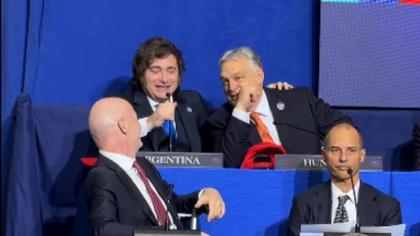(vide) Javier Milei și Viktor Orban, moment viral la Consiliul Păcii de la Washington: „Dacă mai continuăm așa, ne vor separa”