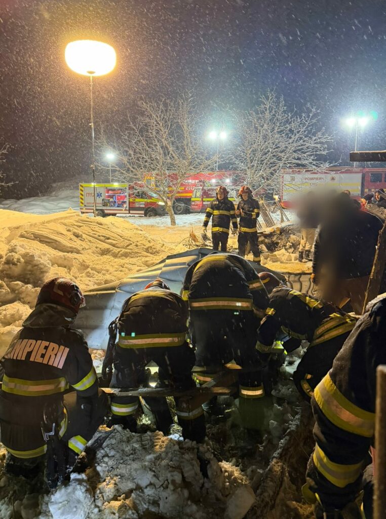 Pompierii au intervenit cu două autospeciale de stingere și o ambulanță SMURD, precum și un echipaj de descarcerare, alături de o autospecială de primă intervenție și comandă.