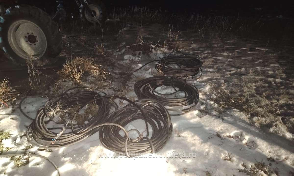 Trei tineri, care tăiau cabluri de la sistemul de alimentare cu energie electrică al unei instalații de irigare, au fost depistați de polițiștii de frontieră. Incidentul a avut loc astăzi dimineața, 23 februarie, la Stânca.