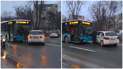 Un accident cu implicarea unui automobil de model Mercedes și a unui autobuz de rută s-a produs, astăzi, după amiază, în sectorul Rîșcani al capitalei. Imagini de la locul impactului au fost distribuite pe rețele.