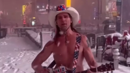 (video) Nici măcar furtuna de zăpadă record din New York nu l-a oprit pe Cowboy-ul dezbrăcat să cânte în Times Square