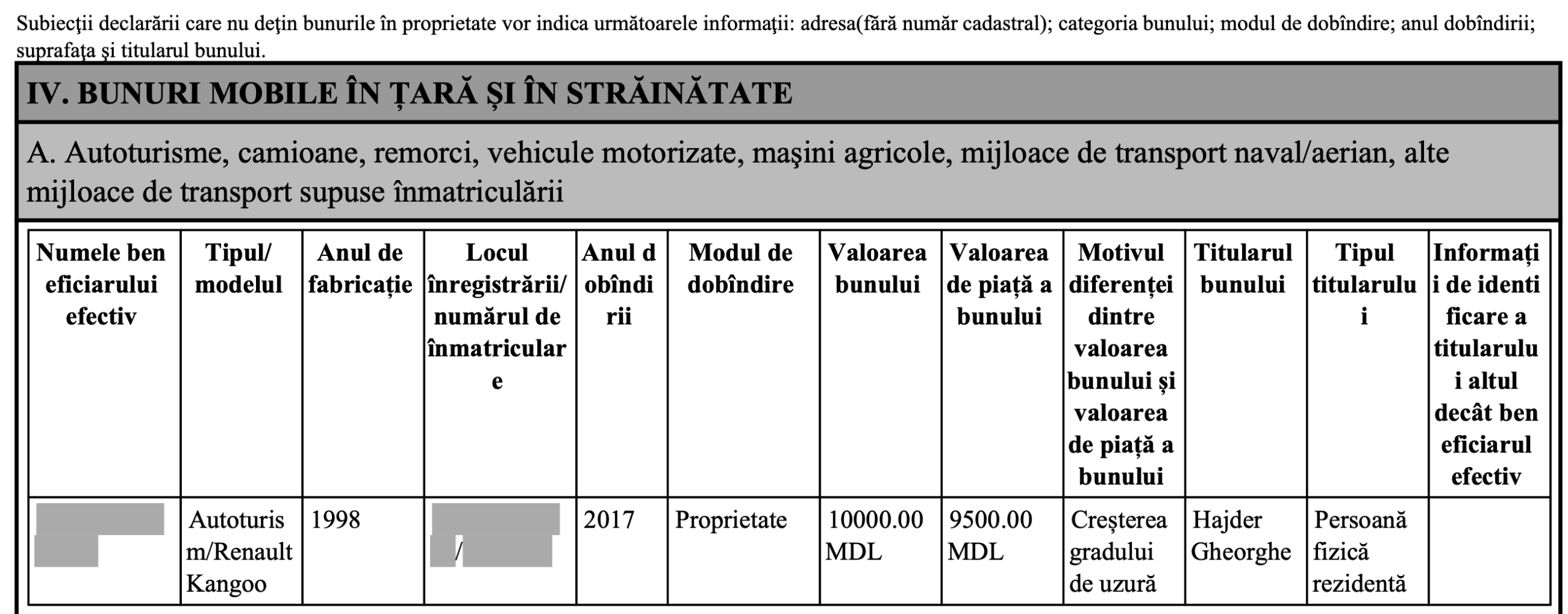 Ministrul Mediului a declarat întâi că are un automobil vechi, pe care nu-l utilizează, apoi că l-a vândut și că își dorește o mașină cu mai puține emisii. Afirmațiile au fost făcute în cadrul emisiunii „Pe față” de la Moldova 1, oficialul menționând că utilizează un vehicul oferit de Cancelaria de Stat în interese de serviciu.