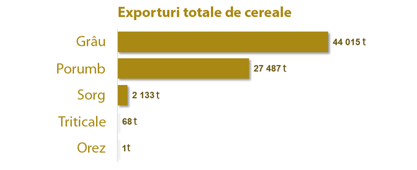 Este de remarcat faptul că, în structura generală a exporturilor lunii ianuarie, cotele fizice și valorice ale mărfurilor din grupa cerealelor practic au coincis: grâu – 60%, porumb – 37%, sorg – 3%.