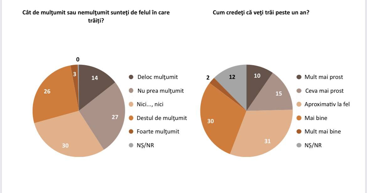 Privind spre viitor, opiniile sunt împărțite. Aproximativ 31% dintre respondenți cred că peste un an vor trăi aproximativ la fel.