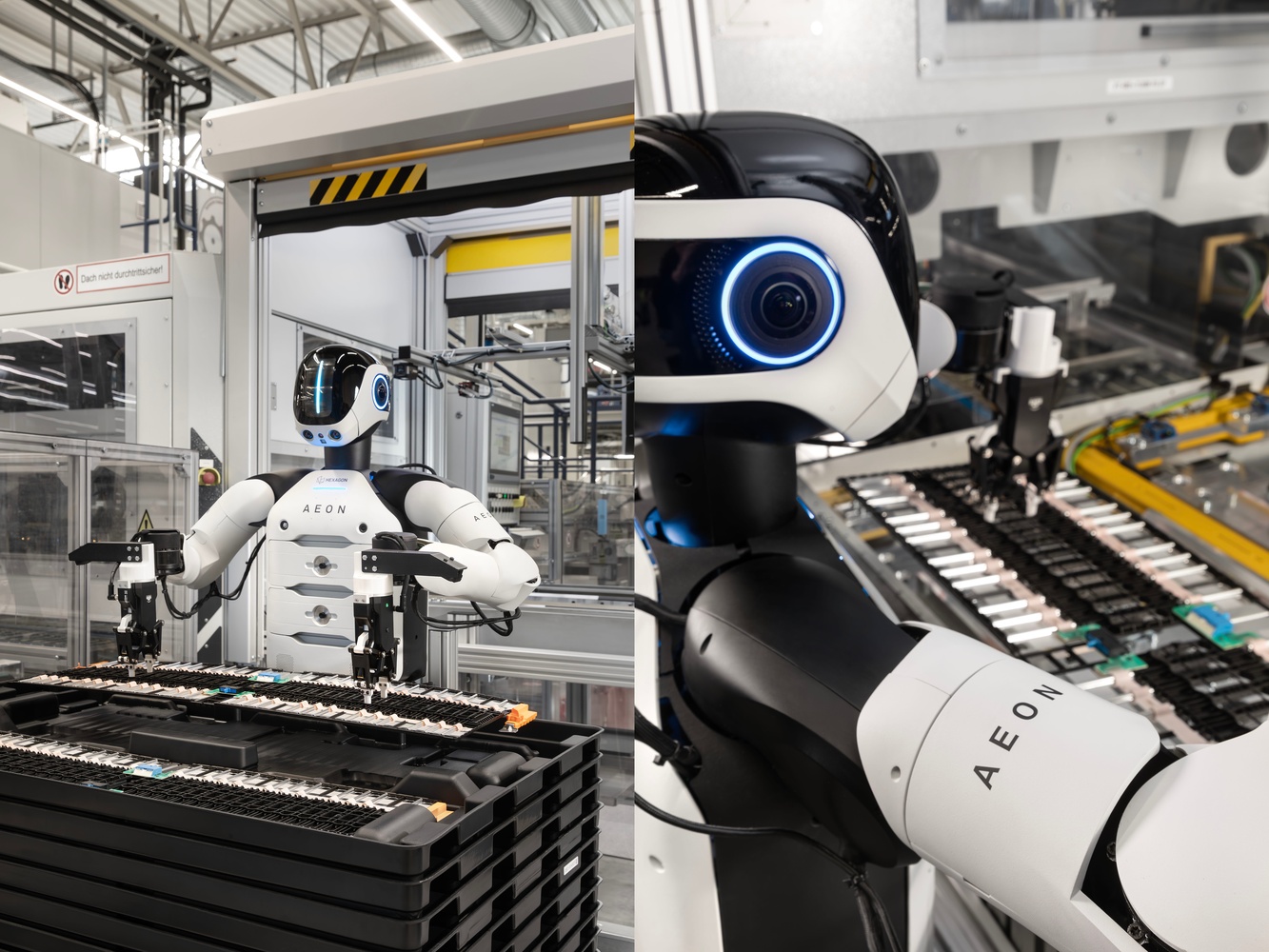 Robotul AEON, cu design antropomorf, permite atașarea flexibilă de elemente pentru mâini, gripperi sau scannere și deplasare dinamică pe roți. Testele și programul pilot se concentrează pe aplicații multifuncționale în asamblarea bateriilor de înaltă tensiune și în producția de componente.