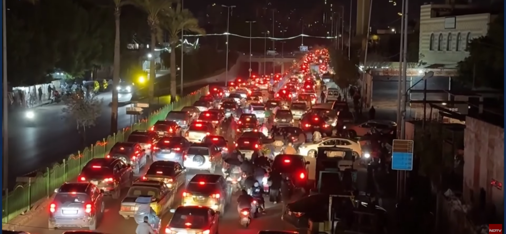 Pe imaginile publicate în presa internațională se vede cum traficul este intens, luni dimineață, la prima oră, pe măsură ce oamenii părăsesc sudul Beirutului.