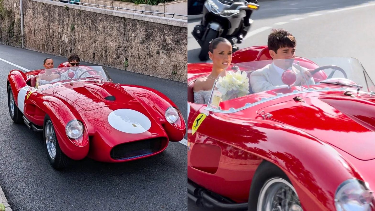 Imediat după ceremonia care a avut loc sâmbătă după-amiază în Monaco, cei doi proaspăt căsătoriți au fost văzuți îmbrăcați în ținute de gală, străbătând celebrele drumuri întortocheate ale principatului la volanul unui Ferrari 250 Testa Rossa din 1957.