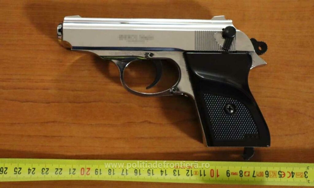 Polițiștii de frontieră din cadrul Inspectoratului Teritorial al Poliției de Frontieră Giurgiu au descoperit, în cadrul unei acțiuni de tip BLITZ, un pistol cu gaz și un încărcător asupra unui cetățean bulgar, pentru care acesta nu deținea documente legale.