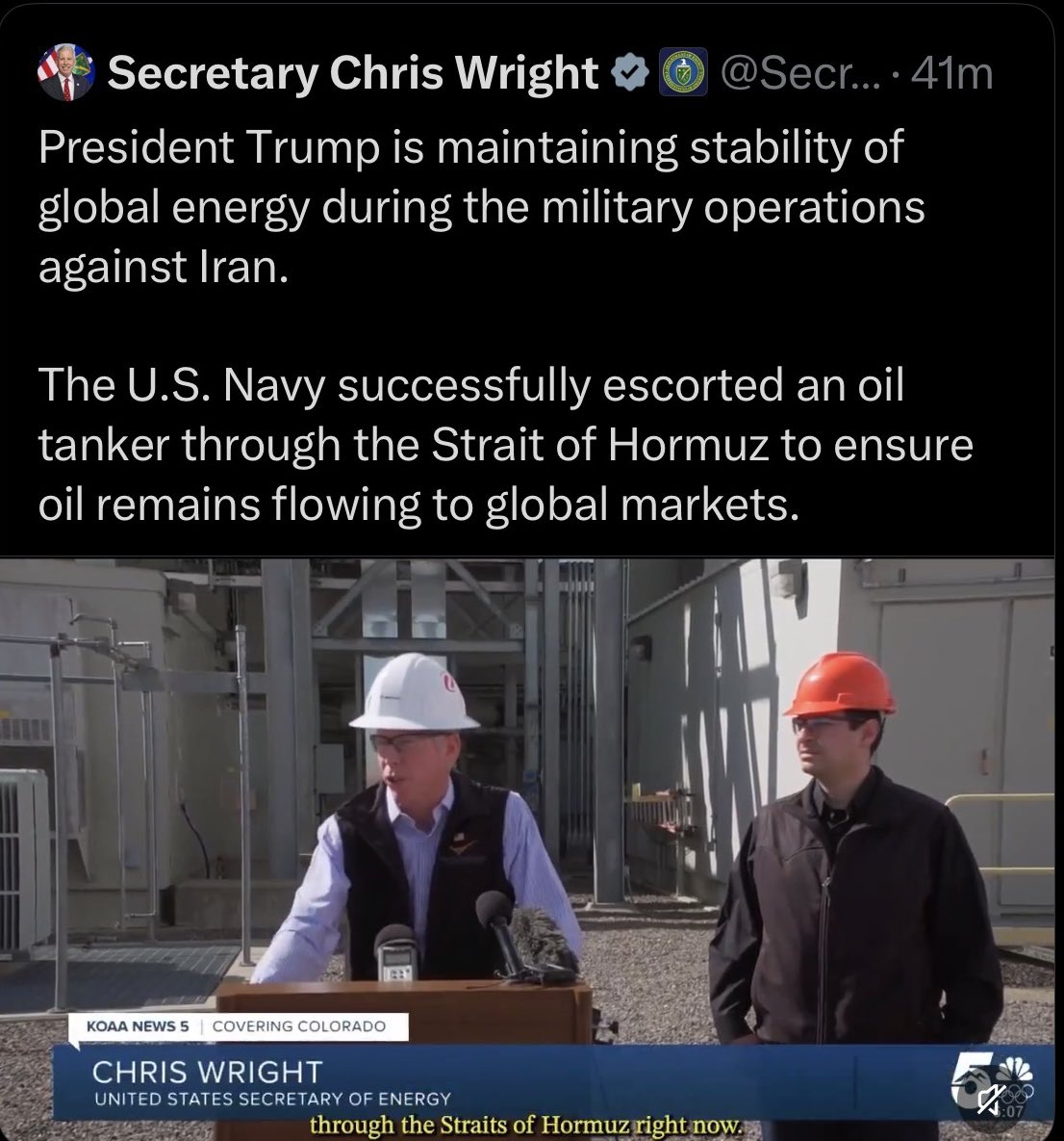 Wright a scris pe X că Marina SUA a „escortat cu succes” un petrolier prin Strâmtoarea Ormuz – la doar câteva ore după ce generalul Dan Caine, șeful Statului Major Interarme al SUA, susținuse altceva. Și anume că armata americană încă explorează „opțiuni” pentru protejarea navelor în pasajul strategic pentru navele care tranzitează Golful.