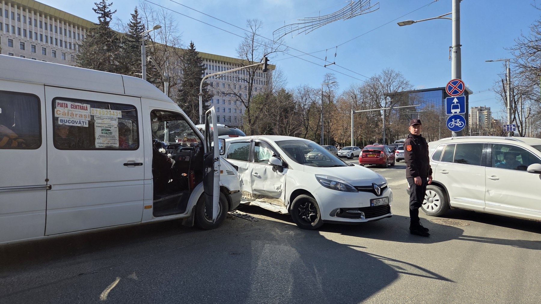Un microbuz în care se aflau mai mulți pasageri și un automobil au fost implicate astăzi, 11 martie, într-un accident violent pe bulevardul Ștefan cel Mare și Sfânt din Chișinău. La fața locului au intervenit polițiștii și carabinierii.