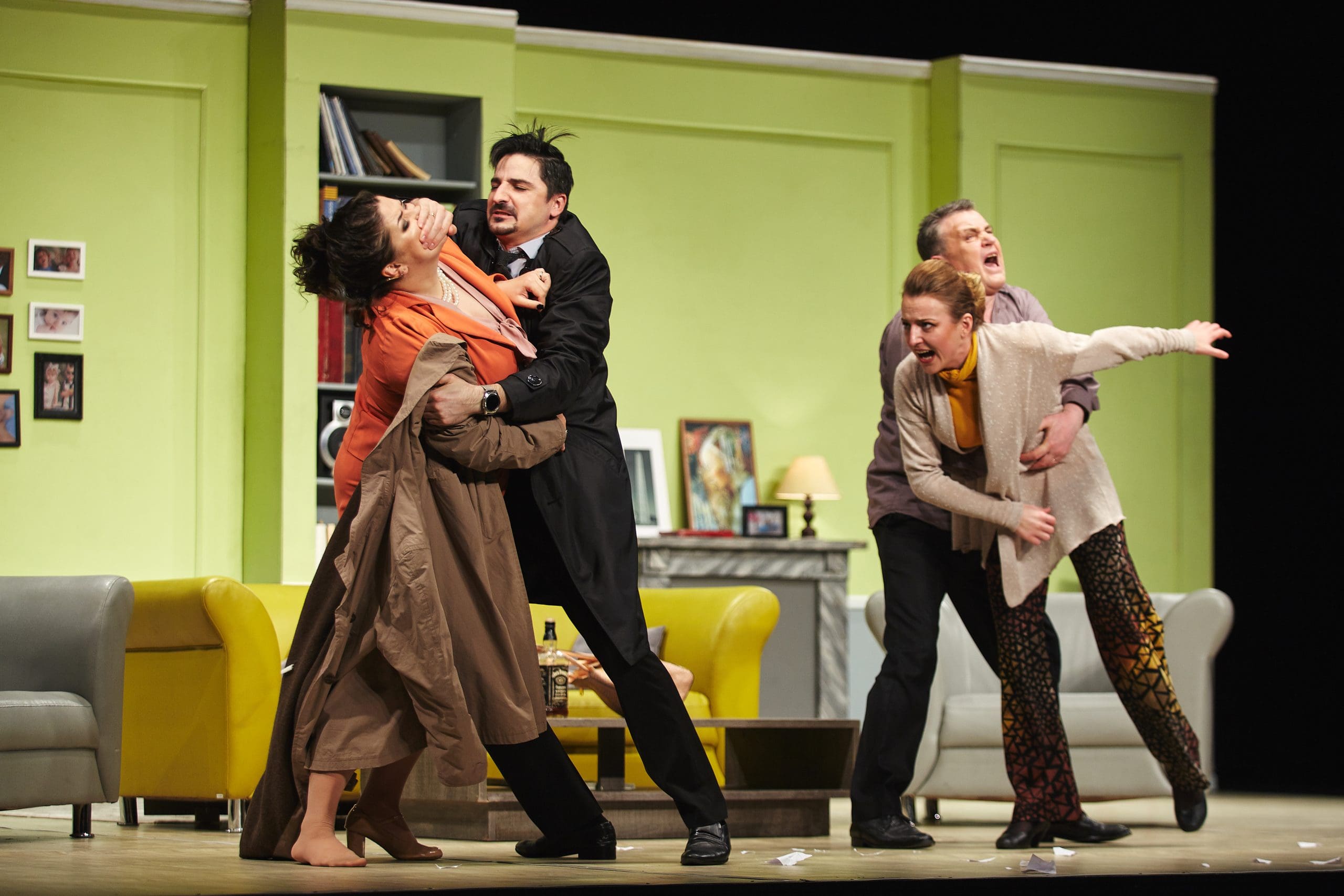 Însă, pe măsură ce dialogul avansează, tensiunile cresc, iar masca civilizației cade. Nemulțumiri vechi, frustrări acumulate, reproșuri ascunse și eșecuri din viața de cuplu ies la suprafață, transformând întâlnirea într-o confruntare explozivă, plină de umor amar și adevăruri incomode.