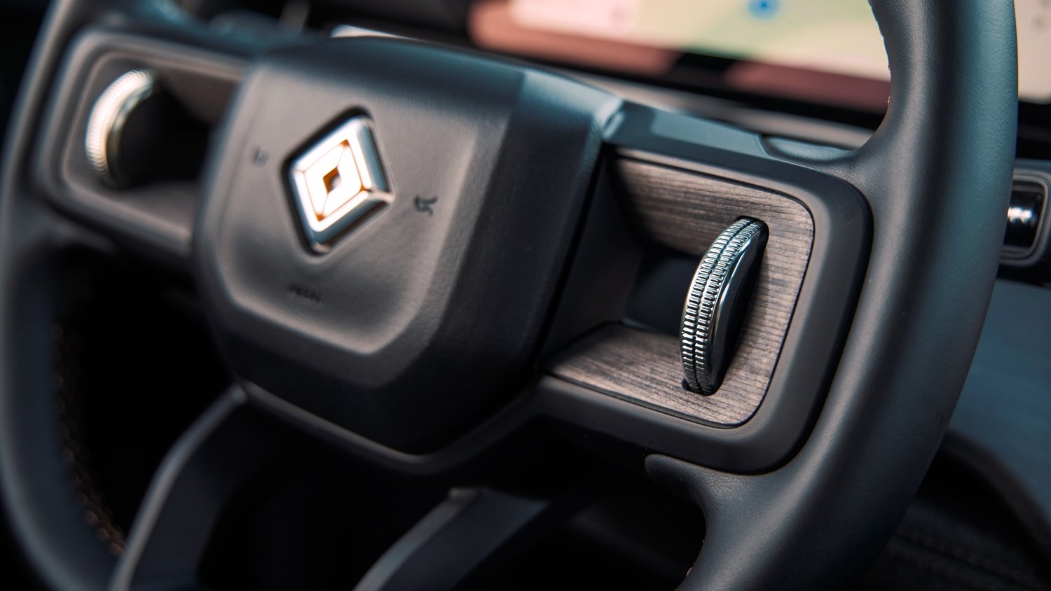 - Roți Haptic Halo: În centrul experienței de conducere R2 se află un volan reproiectat, dotat cu comenzi haptice „halo”. Aceste comenzi dinamice și sensibile la context – capabile de mișcări precum o roată de mouse de calculator (scrolling, pushing, pulling and tilting) – oferă răspunsuri fizice distincte pentru multiple funcții, acoperind decalajul dintre software-ul digital și hardware-ul tactil, pentru a menține concentrarea șoferului asupra orizontului. Atât rotițele fizice, cât și tehnologia haptică subiacentă au fost proiectate intern.