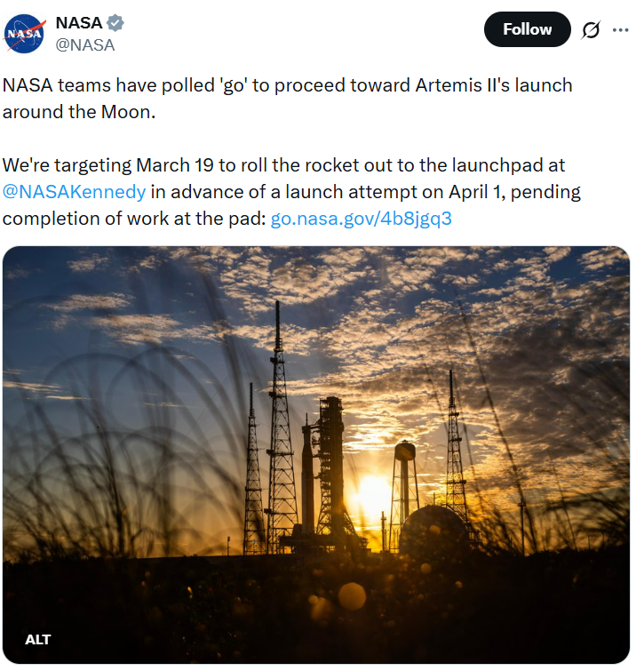 „Suntem pe drumul cel bun pentru o lansare încă din 1 aprilie și lucrăm în acest sens. Este un zbor de testare și nu este lipsit de riscuri, dar echipa noastră și echipamentul nostru sunt pregătite. Rețineți însă că mai avem încă de lucru”, a declarat Lori Glaze, un înalt oficial al NASA, într-o conferință de presă.