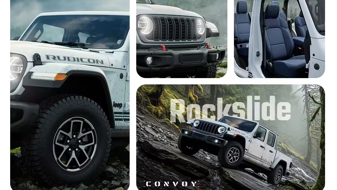 - Personalizare: Clienții pot alege orice culoare exterioară disponibilă pentru Wrangler, care va fi completată de elementele distinctive ale pachetului Rockslide.