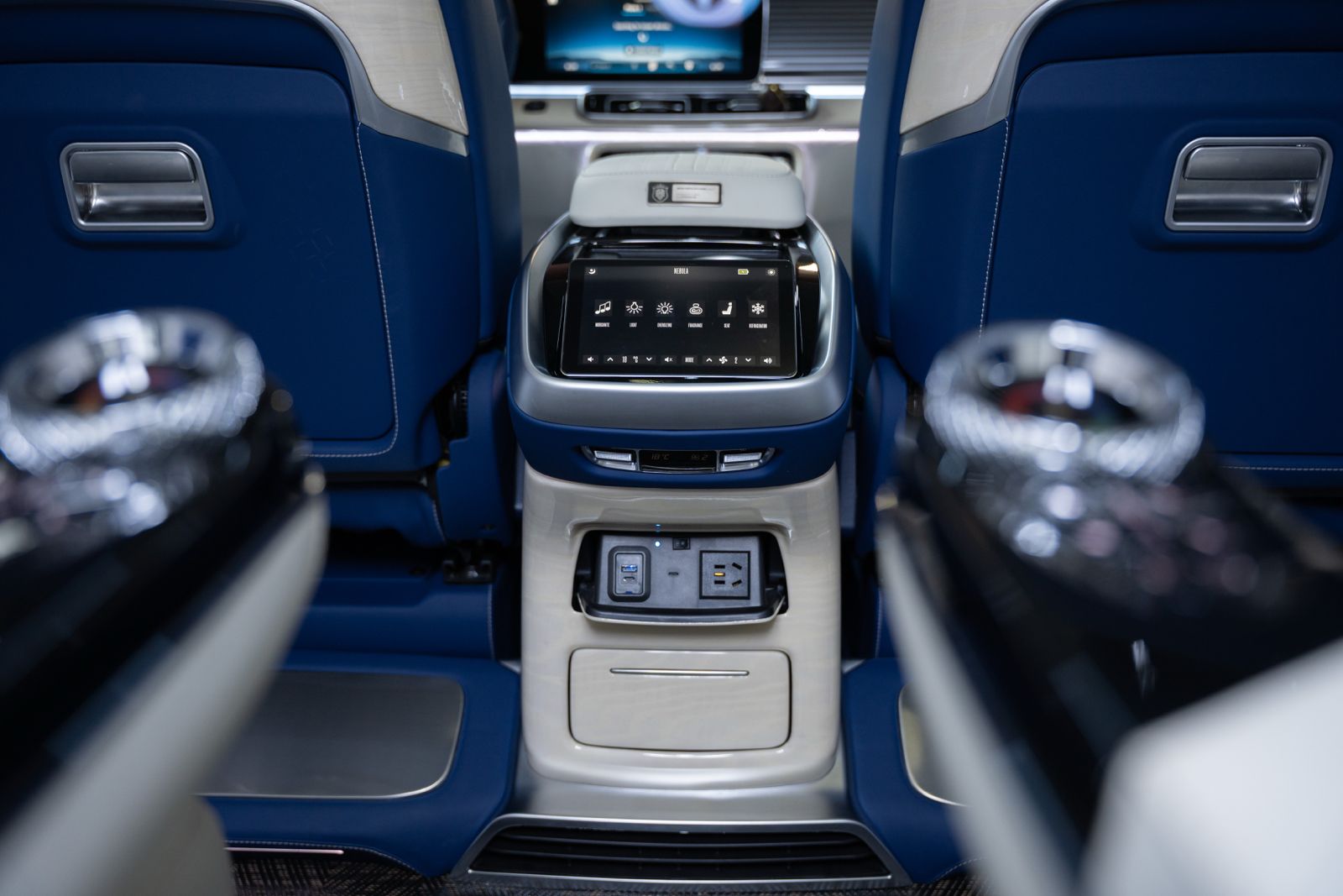 - Două scaune VIP complet rabatabile în piele Savannah Premium, cu comenzi rotative touchpad pentru masaj, ventilație, încălzire, suport lombar și reglaj tetieră