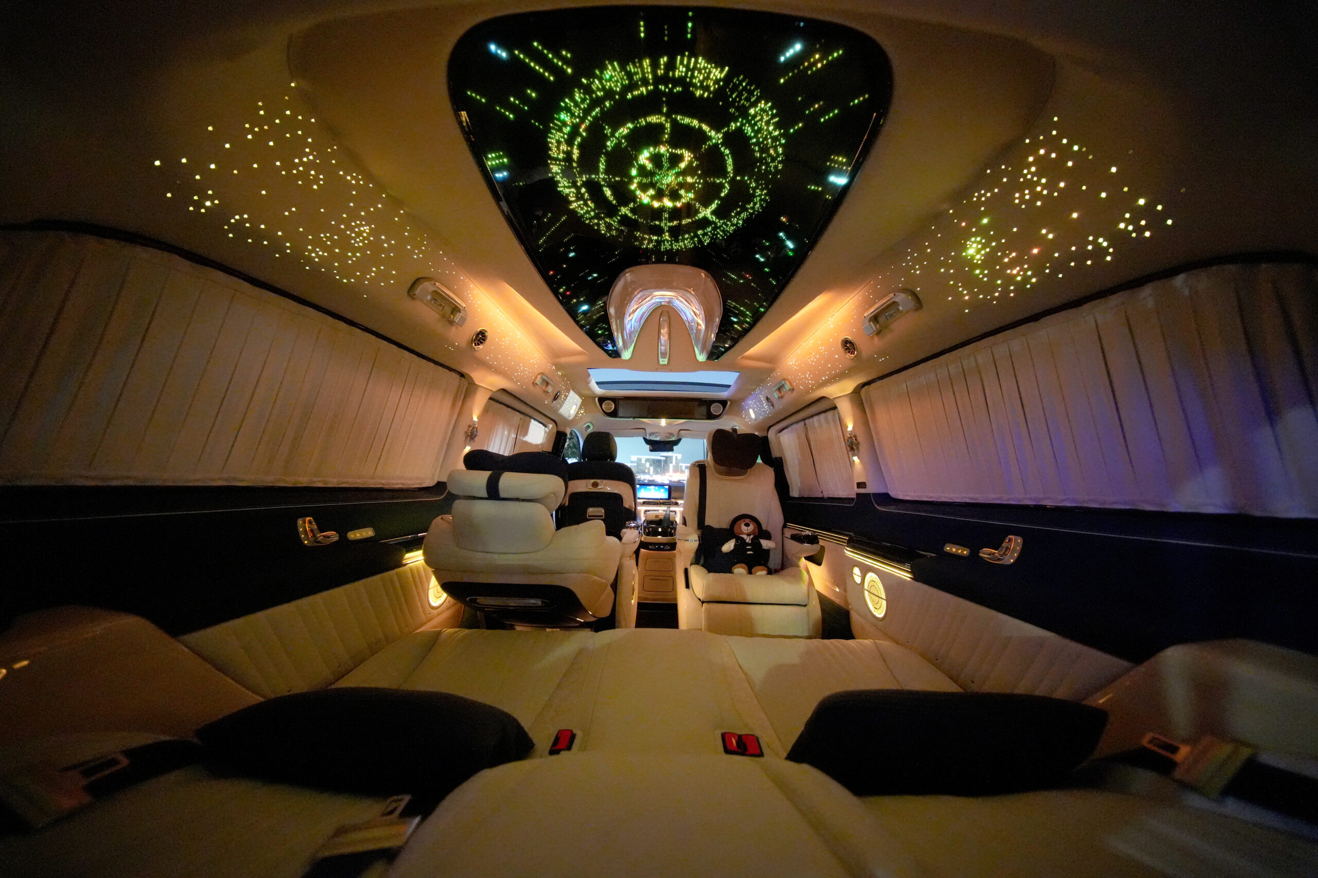 - Plafon acoperit cu Alcantara, cu ”stele” integrate și iluminare ambientală