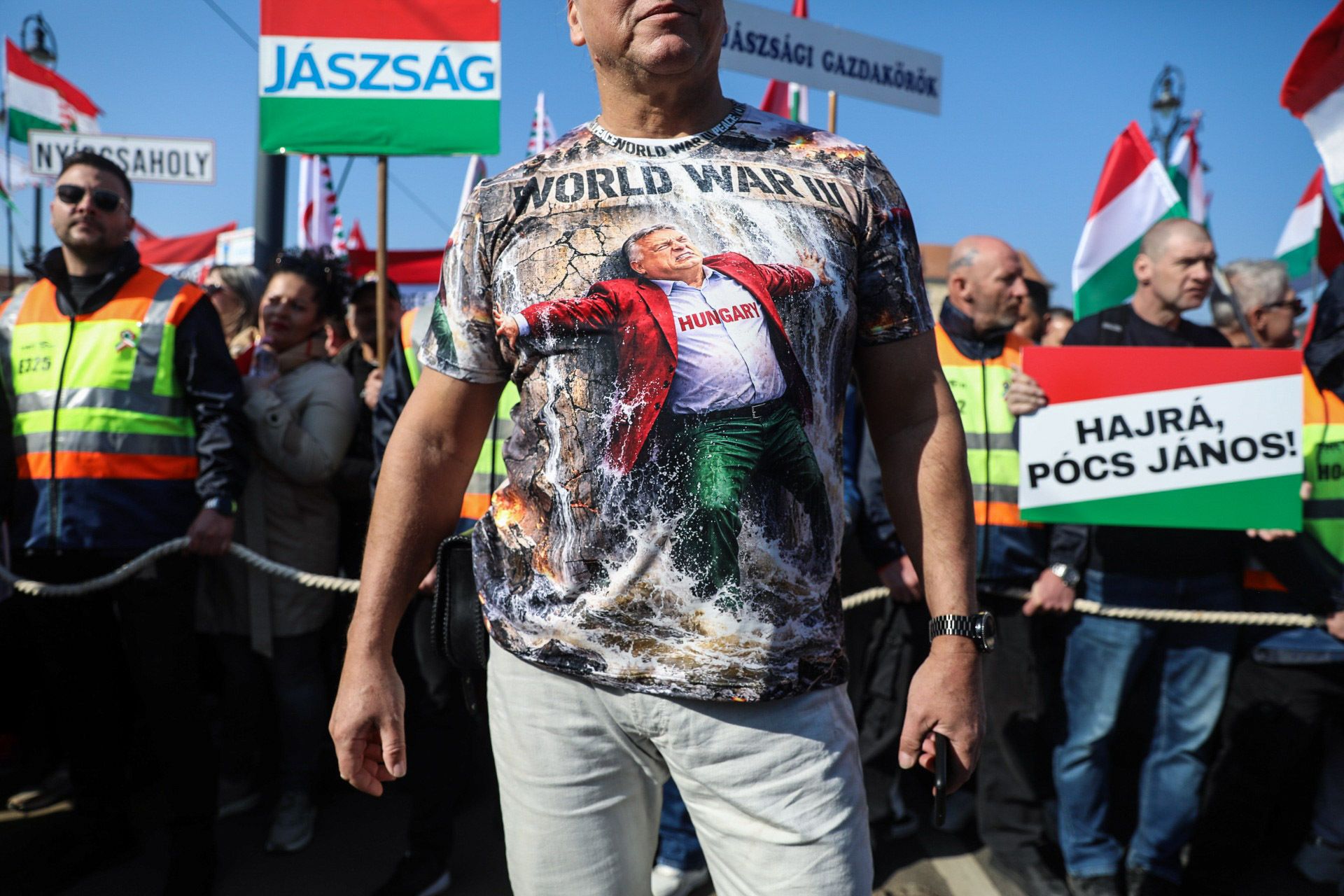 Afișele de campanie îi portretizează pe Volodimir Zelenski, președintele Ucrainei, Ursula von der Leyen, șefa Comisiei Europene, și Manfred Weber, liderul PPE, Viktor Orban spunând că se luptă și cu actuala conducere de la Bruxelles, din familia PPE