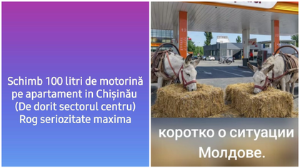 Unii moldoveni au început să facă haz de necaz pe situația din domeniul energetic și creșterea drastică a prețurilor la carburanți în țară. „Schimb 100 litri de motorină pe un apartament în Chișinău”, a scris un internaut pe rețele, iar alții au comentat activ postarea.