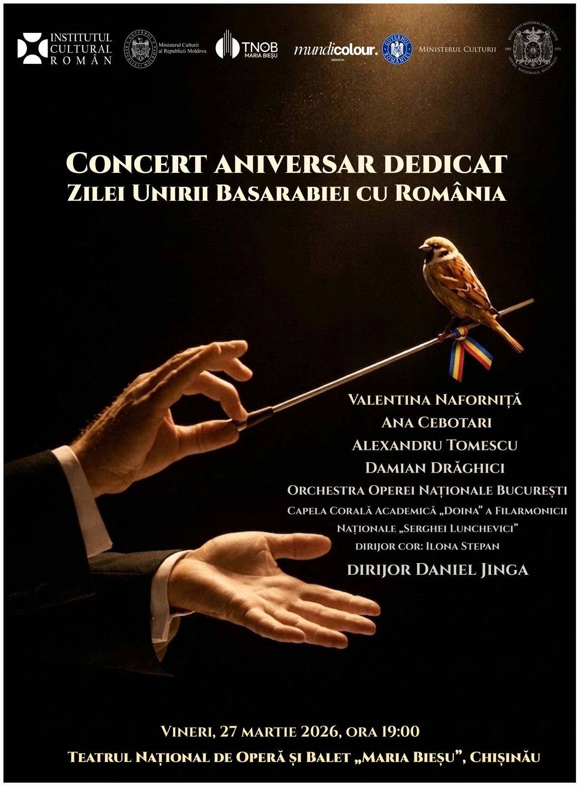 Opera de la București vine la Chișinău pe 27 martie, de Ziua Unirii Basarabiei cu România. Concertul este organizat Institutul Cultural Român, în parteneriat cu Ministerul Culturii din Republica Moldova.