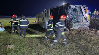 Un autocar din Republica Moldova s-a răsturnat în județul Galați: Un pasager a murit şi alţi 14 au fost răniţi