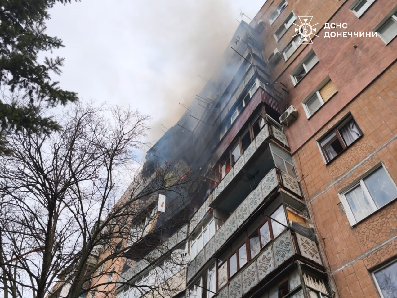 Într-un alt oraș din regiunea Donețk, o dronă a lovit un bloc de locuințe cu nouă etaje. Incendiul a afectat apartamentele de la etajele 5 până la 9.