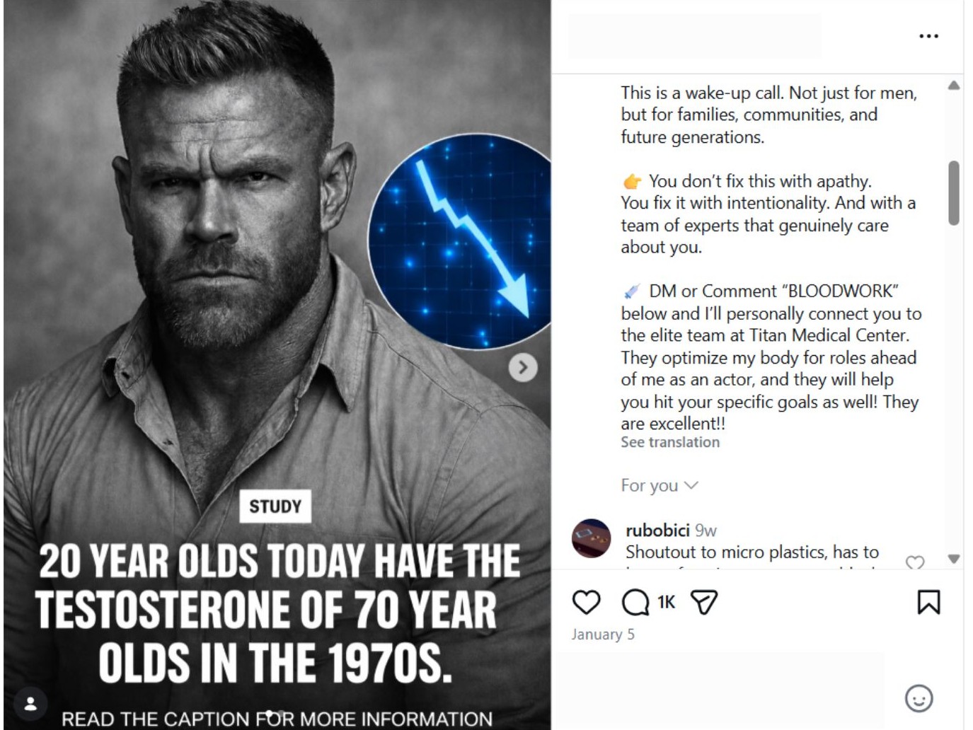 În jur de 8 din 10 postări erau publicate de influenceri, nu de organizații în domeniul sănătății, iar 6 din 10 postări includeau referințe la achiziționarea directă a unor produse care conțineau testosteron. De asemenea, 7 din 10 postări erau făcute de persoane care aveau interese financiare, precum vânzarea de teste, suplimente sau consultații clinice.
