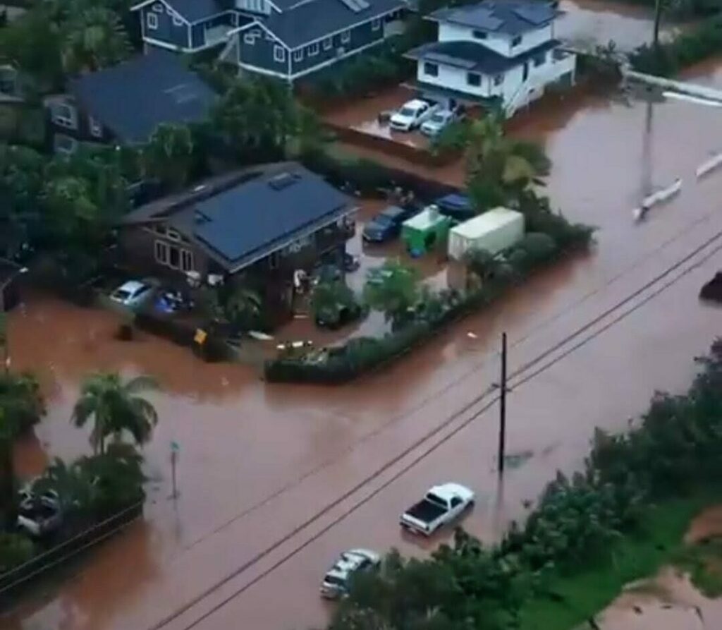 Compania Hawaiian Electric a anunțat că a restabilit electricitatea pentru aproximativ 1.200 de persoane care locuiesc pe coasta de nord a insulei Oʻahu. Curentul fusese oprit preventiv vineri din cauza inundațiilor.