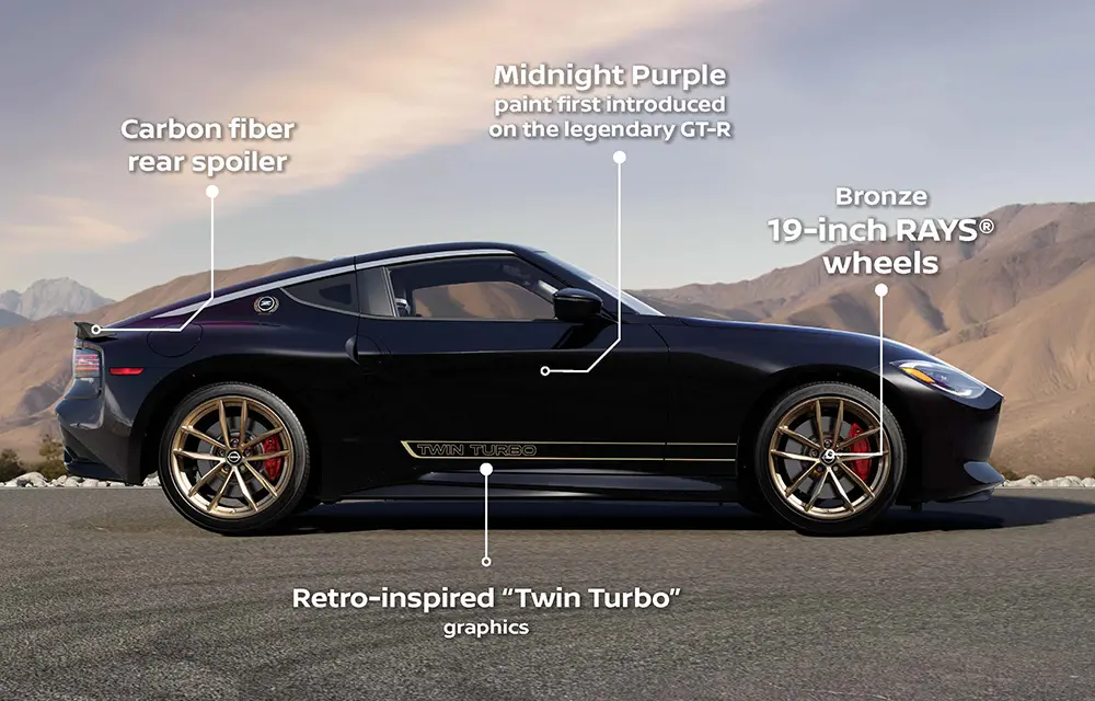 - Emblema nouă: Noua emblemă Z înlocuiește sigla Nissan pe capotă.