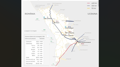 Ministerul Energiei anunță că, pentru menținerea alimentării cu energie electrică a Republicii Moldova, pe parcursul nopții Operatorul sistemului electroenergetic Moldelectrica, în coordonare cu operatorii sistemelor de transport din România și Ucraina, au pus în funcțiune rute alternative de alimentare, inclusiv cele 4 linii de interconexiune de 110kV dintre România și Moldova.