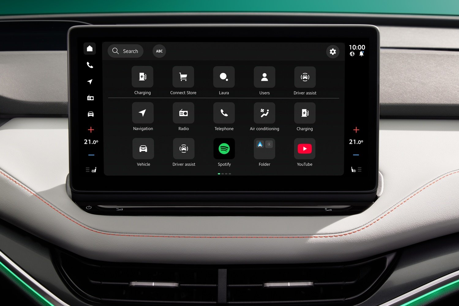 - Aplicații Škoda și aplicații terțe selectate: Spotify, YouTube, aplicații de streaming audio/video, jocuri ocazionale, știri, vreme și altele.