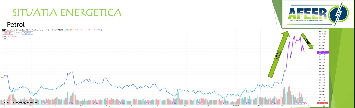În ceea ce privește situația actuală energetică, potrivit calculelor AFEER, petrolul Bret a avut o creștere cu 52%, iar în ultimele zile s-a observat că a început să scadă ușor.
