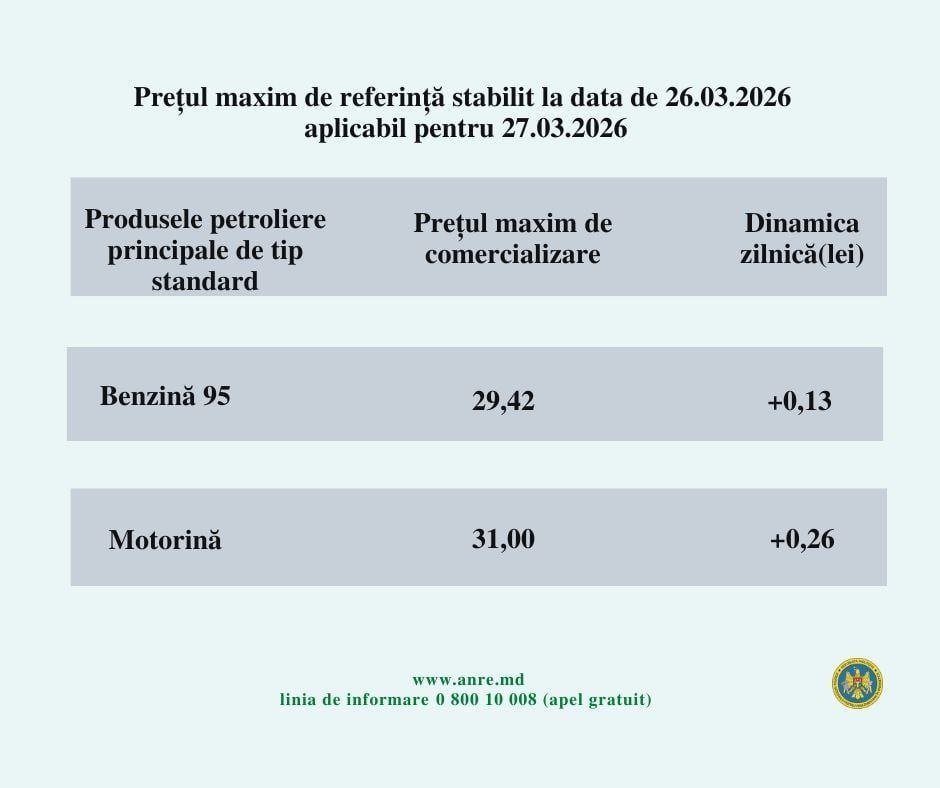 Agenția Națională pentru Reglementare în Energetică (ANRE) a setat tarifele plafon pentru comercializarea carburanților principali în ziua de vineri, 27 martie. Comparativ cu majorările la care am asistat în ultimele săptămâni, cele calculate astăzi, cu 13 și 26 de bani, sunt la nivelul de la începutul lunii martie, atunci când a început valul scumpirilor, urmare a startului conflictului militar din Golf.