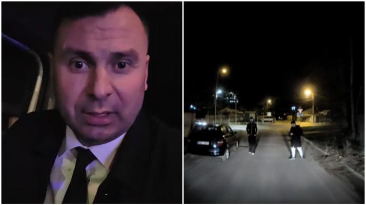 În imaginile publicate de acesta, unul dintre tineri pare să încerce să filmeze momentul, iar ulterior cei doi au susținut că ar fi vrut să facă o farsă și că l-ar fi confundat.