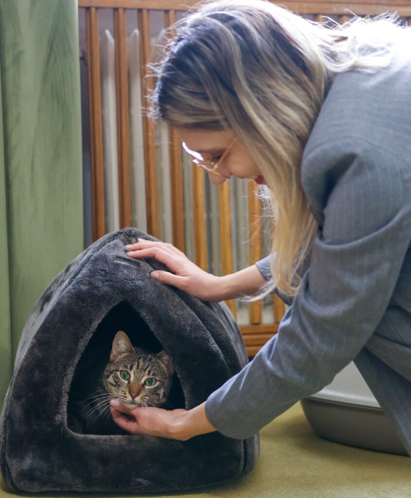 Odată cu adopția, pisica a primit un nou nume — Leia — simbol al unui nou început.
