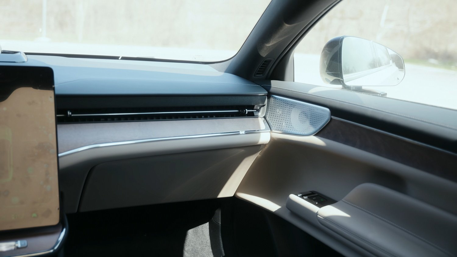 Farurile full LED cu tehnologie Matrix oferă o iluminare excelentă pe timp de noapte, iar sistemul de iluminare adaptivă ajustează fasciculul pentru a nu orbi participanții la trafic din sens opus. Oglinzile retrovizoare sunt fără cadru, un detaliu estetic preluat de la modelul EX90, pe care l-am testat deja.