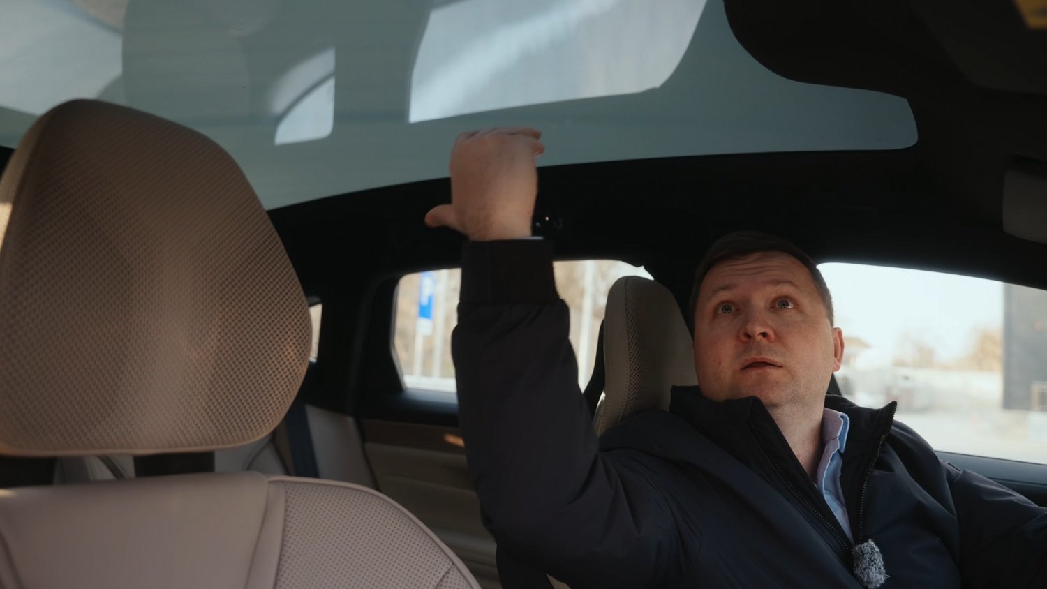 Plafonul panoramic este prevăzut cu sticlă cu opacitate reglabilă electronic, care poate deveni transparentă sau opacă la atingerea unui buton, eliminând necesitatea unei plase de protecție solară.